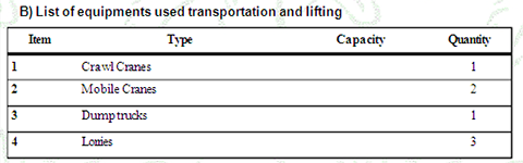 List of equipments